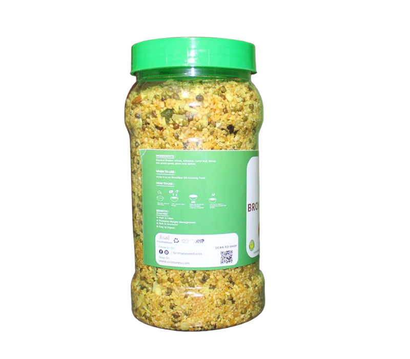 Ingredients: Roasted Broken wheat, Almond, Curry leaf, Mong dal, green gram, ghee and Spices