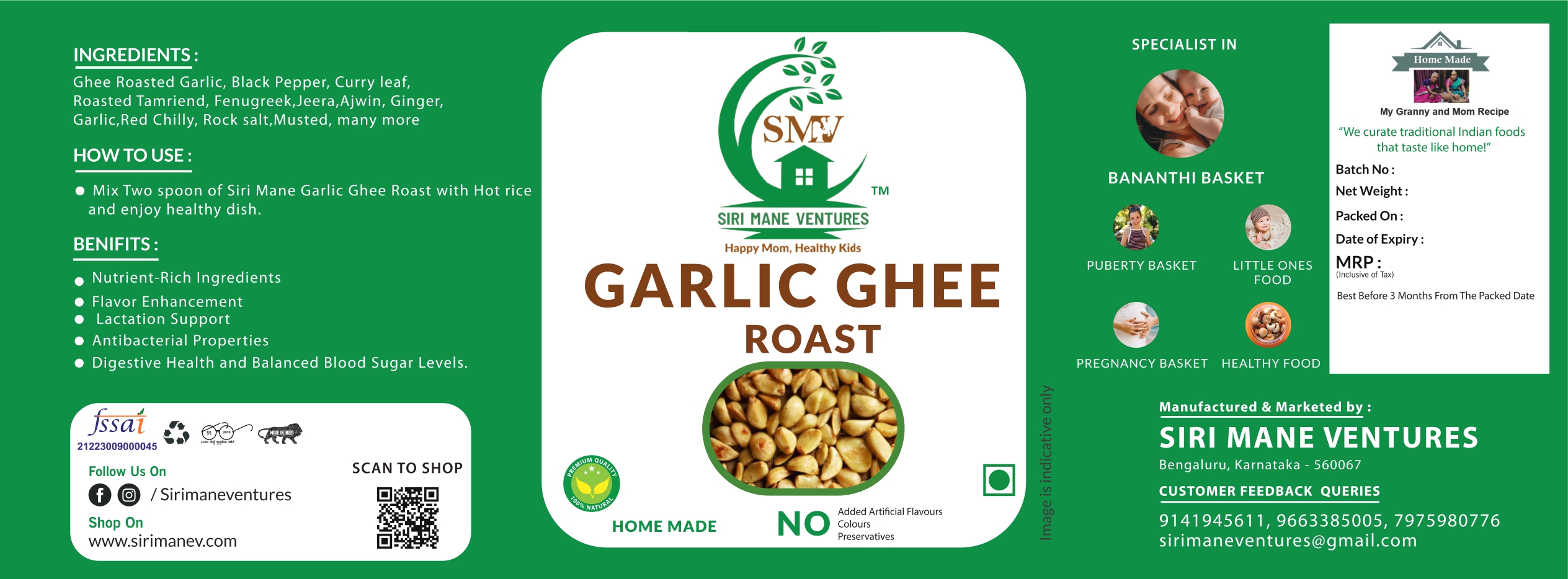 Ingredients: Ghee Roasted Garlic, Black Pepper, Curry leaf, Roasted Tamriend, Fenugreek,Jeera,Ajwin, Ginger, Garlic,Red Chilly, Rock salt,Musted, many more